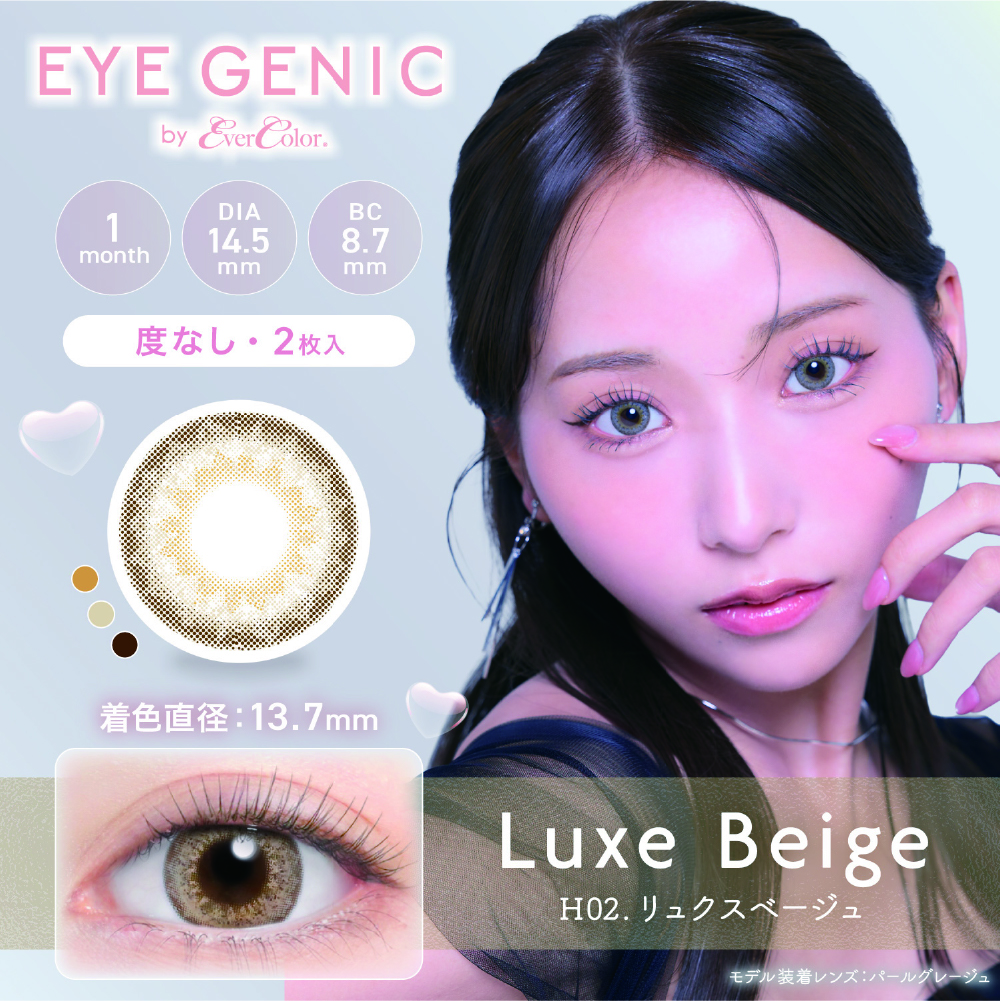 【度なし・H02 リュクスベージュ】EYE GENIC Monthly アイジェニック マンスリー 2枚[AISEI]