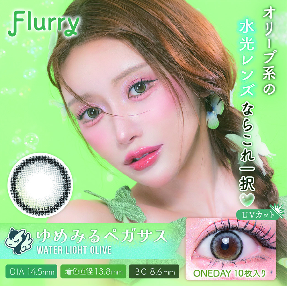 【ウォーターライトオリーブ(ゆめみるペガサス)】Flurry by colors 1day フルーリー バイ カラーズ ワンデー 1箱10枚[Wscale]