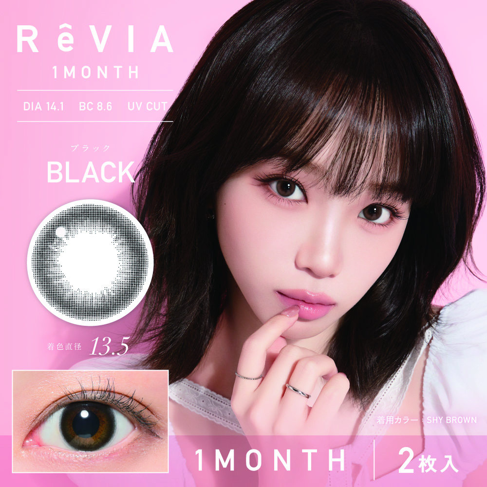 ※2箱以上購入でオリジナルステッカー1枚プレゼント!【ブラック】新 ReVIA 1Month 新 レヴィア ワンマンス 1箱2枚[Lcode]